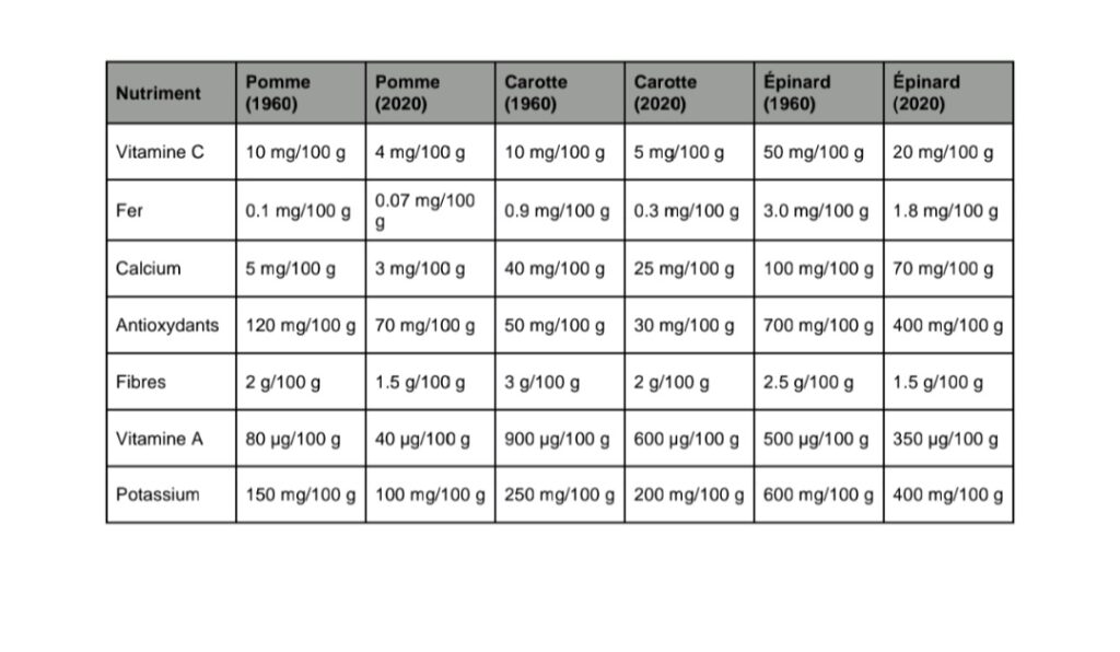 Cependant, une tendance préoccupante émerge : la diminution des nutriments dans ces aliments au fil des décennies.